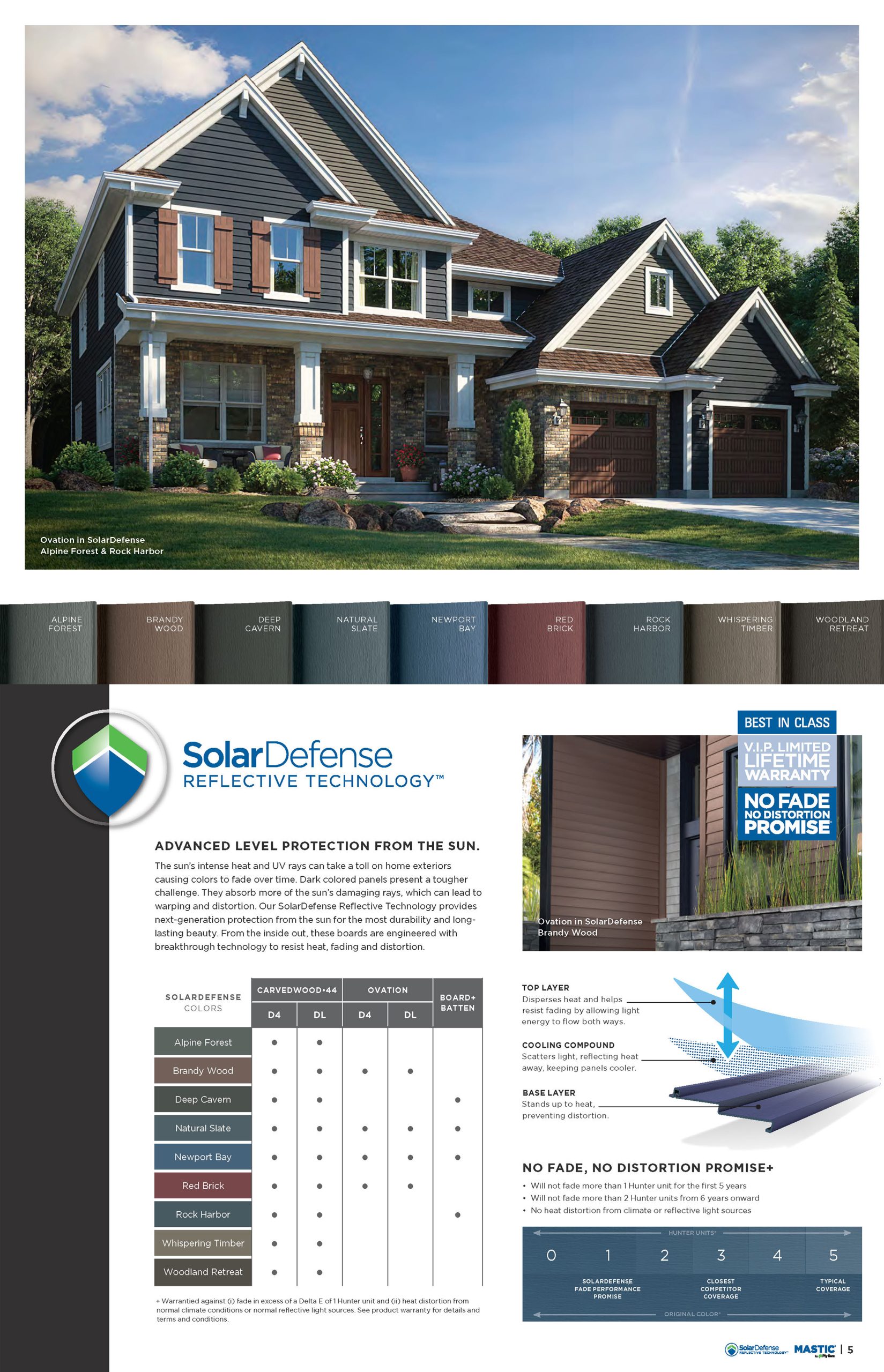 Ply Gems SolarDefense technology provides next-generation protection from the sun with a new, breakthrough color formula, advanced light-reflecting properties, and a heat-resistant base layer.
